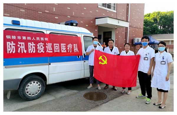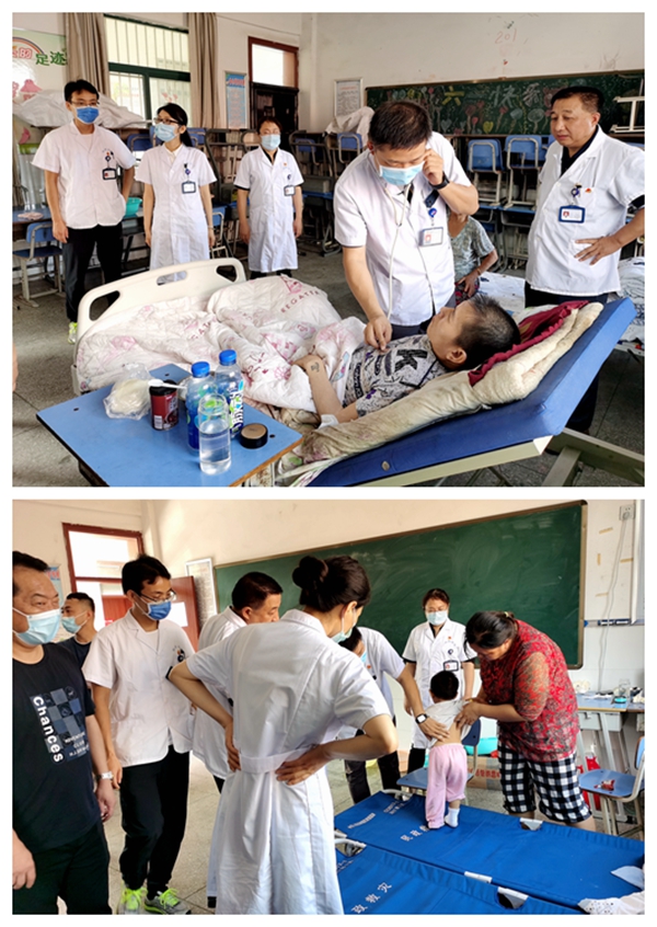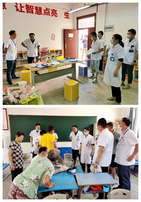 7月31日上午,院党委书记於凤霞、纪委书记张德明、工会主席王晓平和院第三党支部党员志愿者一行,来到我院包保的义安区顺安中心小学、216小学、董店中心小学和义安区实验小学东校区等4个防汛转移安置点开展疾病诊治、发放药品、健康防病指导等工作。