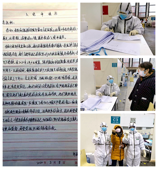 “在武汉,我接触到许许多多优秀党员同志,他们时刻以党员的标准严格要求自己,勤勤恳恳工作,从不叫苦叫累,我从他们身上看到党的优良传统和作风,他们勇担责任、冲锋在前、无私奉献的精神也影响着我,进一步激发了我加入中国共产党的决心……”