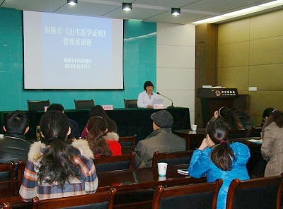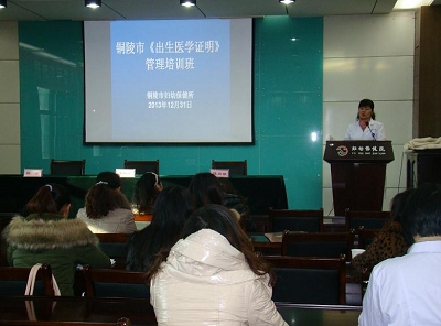 12月31日,铜陵市《出生医学证明》管理培训班在市妇幼保健院举办,来自全市县、区卫生局、妇幼保健所、助产机构负责《出生医学证明》管理的领导与助产机构签发管理人员二十余人参加了培训。