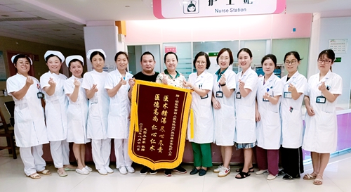 8月13日,迎着清晨第一缕阳光,产妇孟女士和她丈夫给我们产一区送来一面写着“医术精湛 尽心尽责 医德高尚 仁心仁术”的锦旗,以分享她喜得龙凤胎的喜悦,和对产一区所有医护人员的感谢。