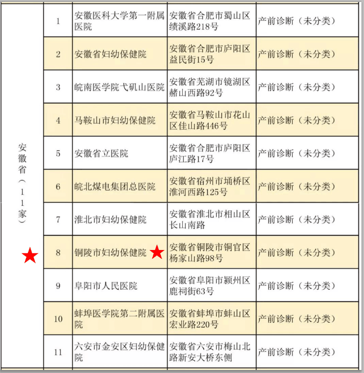 近日,国家卫健委公布了全国经批准开展产前诊断技术的医疗机构名单,全国共有340家医疗机构获批,安徽省共11家,铜陵市妇幼保健院上榜,成为铜陵地区唯一一家产前诊断机构!