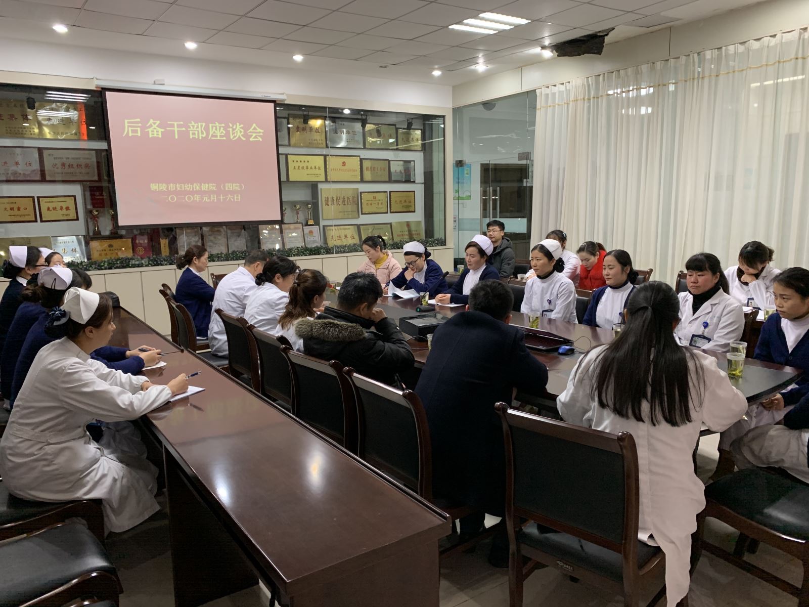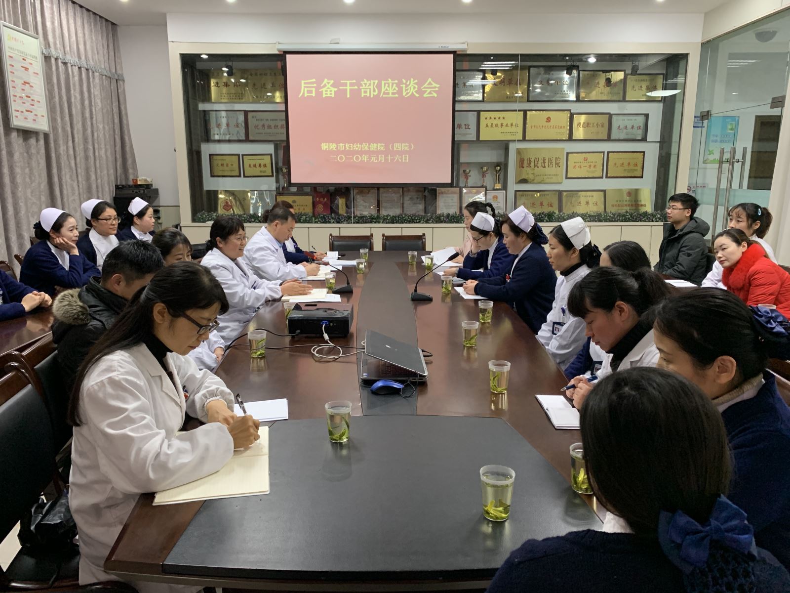 为加强干部队伍建设,1月16日下午,我院在门诊七楼第三会议室召开后备干部座谈会,院党委书记於凤霞、院长章秀、工会主席王晓平、部分职能科室负责人及管理、护理后备干部、专科护士等共30余人参加了座谈会,会议由院党委书记於凤霞主持。