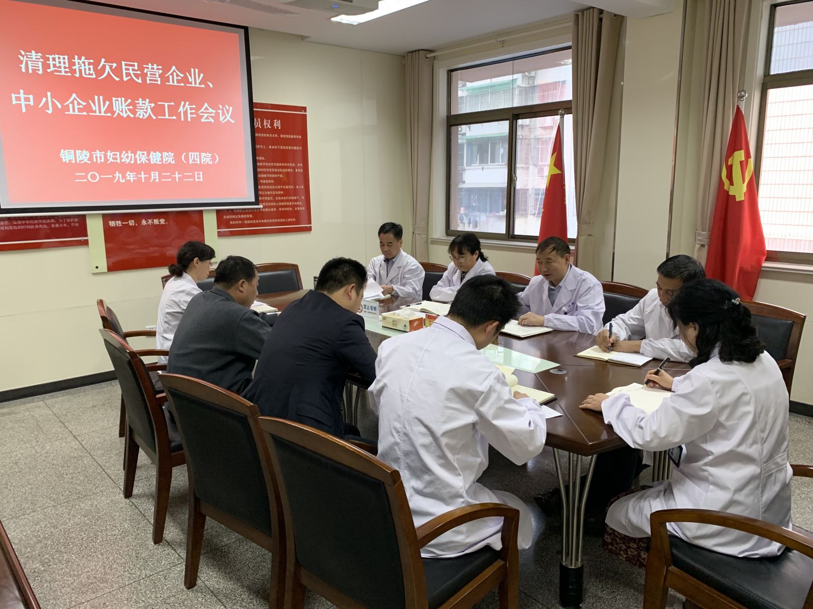 为贯彻落实市卫健委关于清理拖欠民营企业中小企业账款工作会议精神,10月22日下午,我院在行政楼二楼会议室召开了排查清理拖欠民企、中小企业账款工作再布置工作会议。院党委书记於凤霞、院长章秀、副院长国小满、党委委员张德明以及相关科室负责人参加了会议。