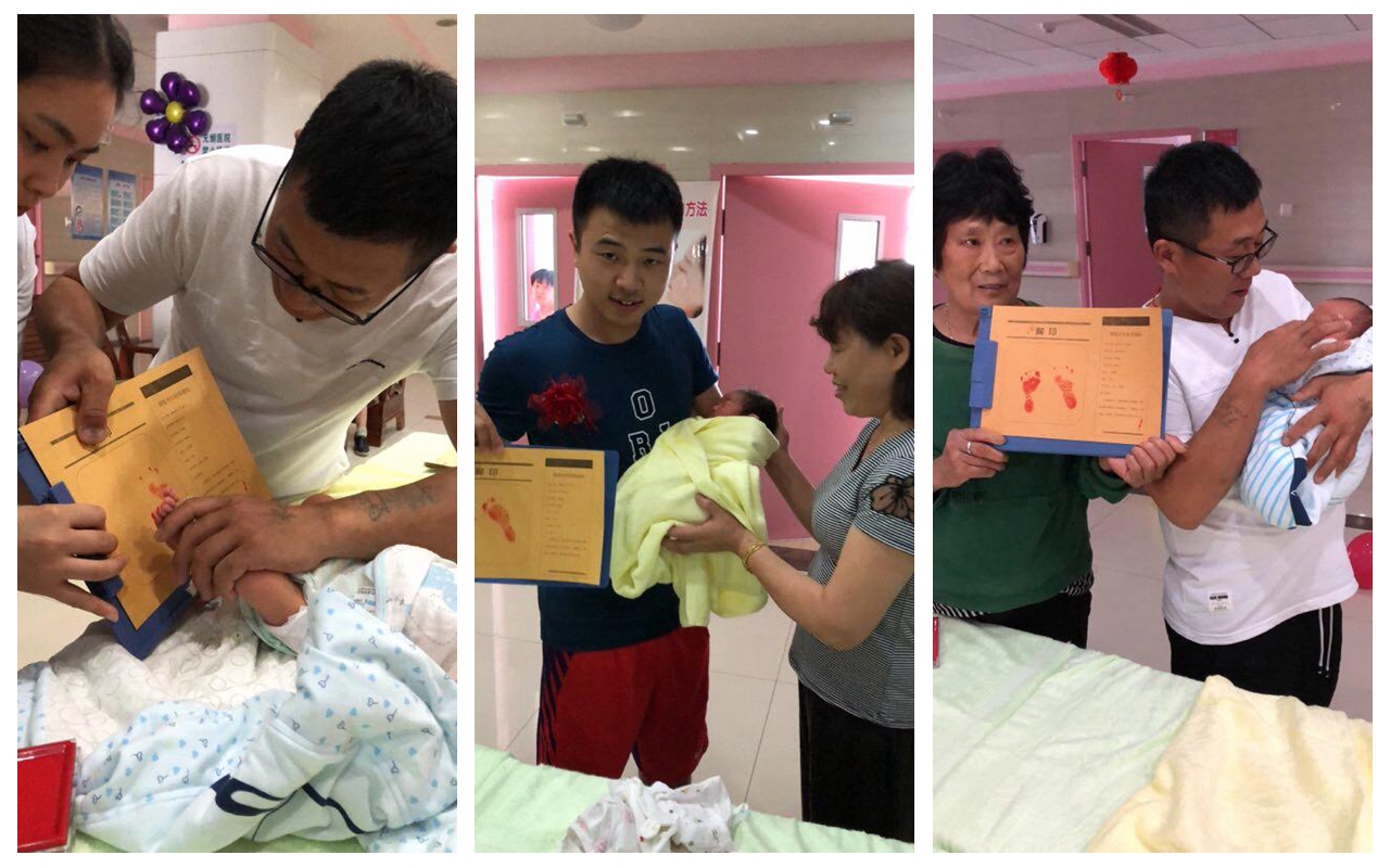 活动结束后,由爸爸亲自印上孩子的足印,作为给孩子的礼物。奶奶们则给爸爸挂上了光荣的大红花,成为了一名“合格”的爸爸!