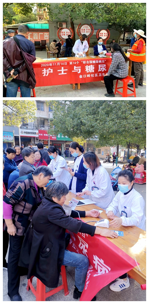 金口岭社区卫生服务中心医护人员希望通过这次义诊咨询活动,增强社区居民的糖尿病防治意识和技能,改变不健康的生活方式。在接下来的工作中,社区护士将在糖尿病健康管理中发挥重要作用,促进高危人群和患者的早期发现,确保高危人群得到及时干预,患者得到及时治疗;为糖尿病患者提供自我管理的专业培训及心理辅导,减少并发症的发生发展;对2型糖尿病危险因素进行干预,预防糖尿病的发生。