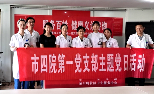 6月29日,院第一党支部组织医疗服务队来到金口岭社区卫生服务中心,开展“我为群众办实事”主题党日活动。 活动现场,有的为群众义诊咨询、广泛宣传现阶段疫情防控知识,有的为群众作血压、血糖等查体监测,有的走进健康讲堂,讲授不同年龄段女性健康保健知识。现场还免费发放了防暑、防蚊虫、外伤处理等200余份药品和宣传手册。