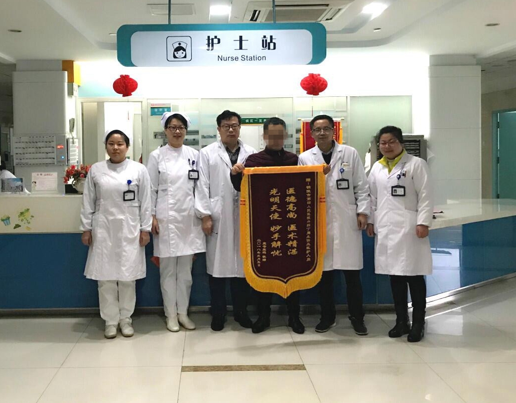 3月5日上午,我院外科病区一患儿家长将一面印有“医德高尚,医术精湛;光明天使,妙手解忧”的锦旗送到我院外科医务人员手中表示感谢。 一周前,患儿徐某因左侧阴囊空虚来院就诊,外科丁主任接诊后,详细询问了解患者病情,经查诊断为小儿隐睾。经过精心准备,于2月28日对患儿进行了手术治疗,术后恢复良好。外科医护人员在徐某住院期间耐心、细致、周到的服务和高超的专业技术赢得了患儿及家长的感激和信任。