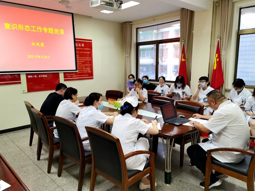 於凤霞强调,要强化意识形态引领,推动党史学习教育,切实把思想和行动统一到习近平总书记关于学党史、用党史的重要论述上来,准确把握意识形态领域的新形势、新变化,提高政治敏锐力;要强化思想认识,始终站稳政治立场,自觉把意识形态工作带入到医院工作的全过程全方面,扎实开展“我为群众办实事”实践活动,通过办实事解难题,让人民群众坚定不移听党话、感党恩、跟党走;要坚持学用结合,把意识形态工作同党史学习教育和医院发展紧密结合起来,使意识形态的每项措施都围绕医院中心工作,要认真谋划十四五期间医院发展的重要方向、目标、措施,真正把党史学习教育成果转化为推动十四五开好局起好步的强大动力。