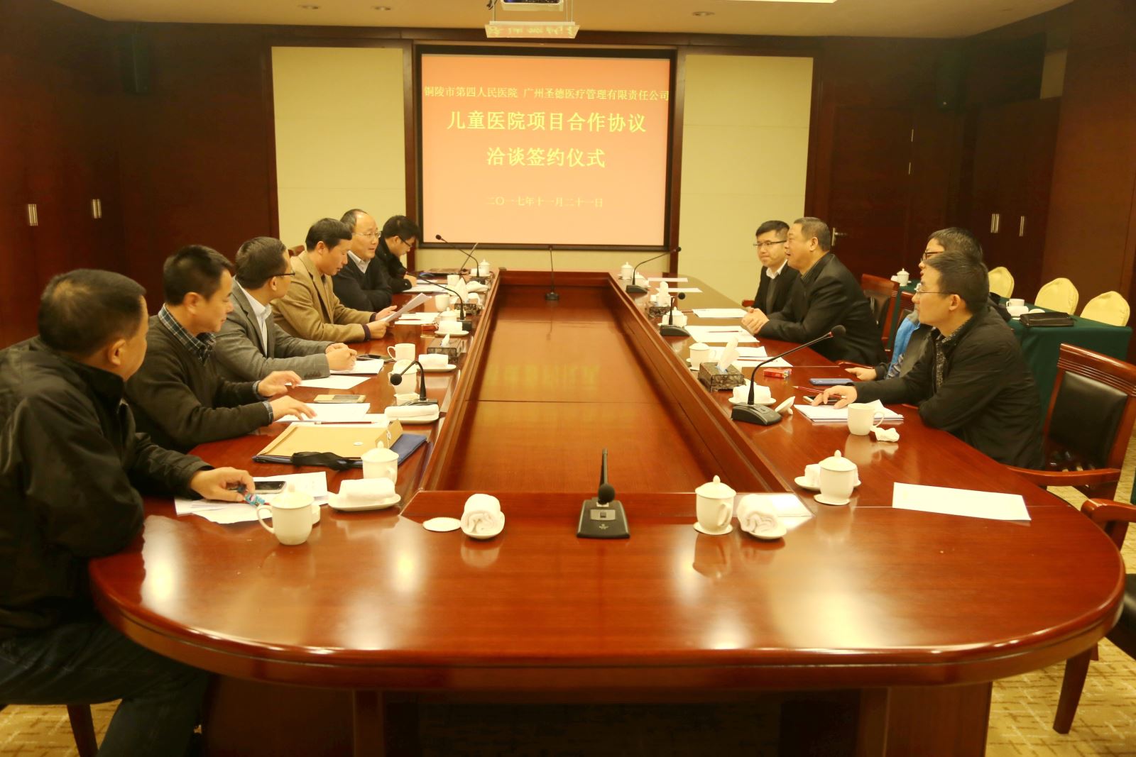 11月21日下午,我院与广州圣德医疗管理有限公司在铜都大酒店三楼会议室,就合作建设市儿童医院项目举行了协议签约仪式,我院副院长国小满、广东七喜集团副总裁向仕平分别代表双方签署了合作协议。市卫计委党委副书记朱友生,市中医院党委书记、院长(我院原党委书记、院长)杨志刚,七喜医疗技术服务有限公司总经理朱周崎,七喜集团安徽区总经理贺学高、总裁助理闫浩宸,市卫计委规划财务科科长田震,我院院长助理张德明及市招商局项目投资科工作人员等出席了签约仪式。