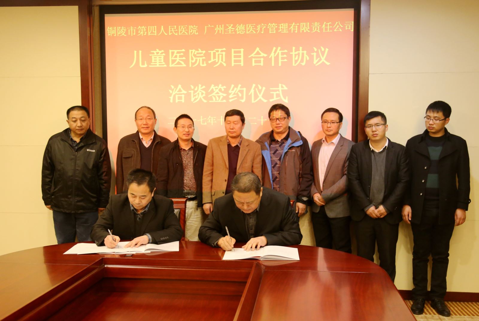 广州圣德医疗管理有限公司,为广东七喜集团的健康产业链重要终端,注册资本50亿人民币。此次我院与广州圣德医疗管理有限公司合作协议的签订,是实施市政府与广东七喜集团《战略合作框架协议书》的具体表现,标志着合作建设儿童医院进入实质性阶段。协议明确了由广州圣德医疗管理有限公司投资完成市儿童医院项目建设,开办以儿童血液病为特色的儿童医疗保健和生殖辅助服务,并引入高端医疗资源,无论是对广州圣德医疗管理有限公司优化战略布局、实现新的跨越发展,还是对铜陵市健康产业、我院的发展,都将产生重大而深远的影响,是实现双方互惠、互利、互赢的智慧选择。