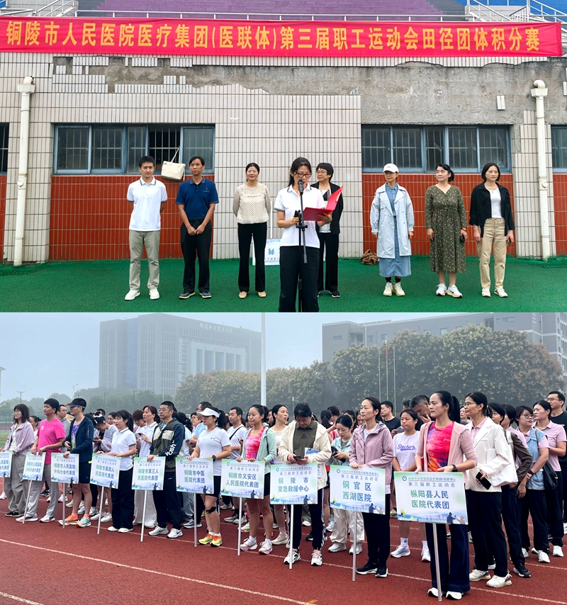 秋高气爽,丹桂飘香。10月12日上午,由我院承办的铜陵市医联体第三届职工运动会田径项目比赛在铜陵职业技术学院体育场隆重举行,一场属于白衣天使们的速度与激情在此上演,来自铜陵市医联体各单位的12支队伍共计220余名医务工作者们暂时脱下白大褂,换上运动装,在赛场上尽情挥洒汗水,展现了铜陵卫健系统职工昂扬向上的精神风貌和超越自我的体育精神。