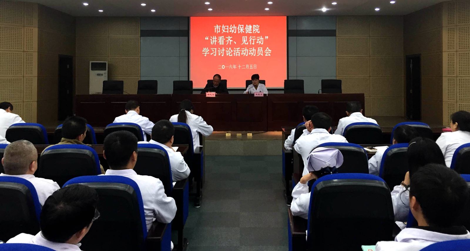 朱书记在动员讲话中对医院开展“讲看齐、见行动”学习讨论提出了三点要求:一是高度重视,精心谋划、周密部署党员干部特别是领导干部要把自己摆进去,既做学习讨论的组织者、推动者,又做学习讨论的参与者、实践者,带头学习研讨,带头查找问题,带头整改提高。院党委将学习讨论督查指导作为“两学一做”学习教育调研督导的重要内容,及时掌握进展情况,并纳入年度综合考核。二是统筹兼顾,务求工作实效。统筹安排好学习讨论各个“关键动作”,把学习讨论与学习贯彻省、市第十次党代会精神相结合,与总结今年工作谋划明年思路相结合,既要开展好学习讨论,又要抓好医疗保健各项工作。三是加强宣传,营造舆论氛围。把开展学习讨论作为党的十八届六中全会精神宣传的重要方面,突出报道开展学习讨论的有力举措、主要成效、深学细照、立行立改的好做法好经验,激励先进,鞭策后进。积极运用新媒体新手段,增强学习讨论的影响力、辐射力。
