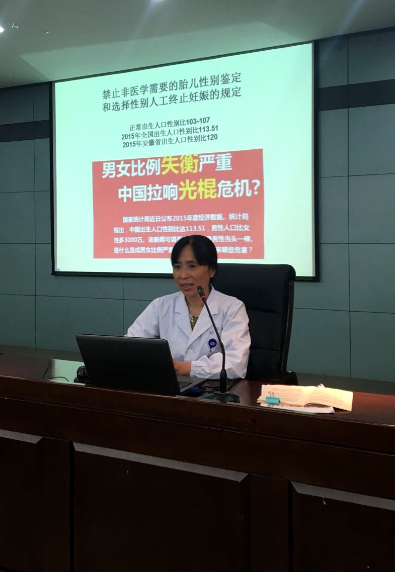 培训班由副院长章秀主持,院相关专家做了专题讲座。讲座围绕出生人口性别比综合治理工作形势分析及工作部署、“两非”案件查处有关法律法规梳理、出生人口性别比统计监测和数据分析等内容,分析当前性别比工作形势,提出了“十三五”综合治理出生人口性别比工作的新要求。接着,妇产科专家就中期人工流产的程序,计划外中期人工流产要求和注意事项进行了讲解,朱主任特别指出,计划外中期人工流产需要携带乡、镇、社区证明,身份证,计划内中期人工流产需要组织专家鉴定以及鉴定工作中出现的一些现况和问题,用生动的实例诠释了应对办法和对策。