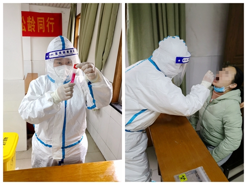 为更好地完成核酸检测采样指令性任务,我中心立即联系13家单位,收集所有人员信息,同时与第三方检测机构对接。 2月1日上午,3名采样组成员提前做好个人防护,分工明确,一人引导被检人员入场、测温、登记,一人负责采样,一人负责医疗垃圾处置及现场消杀,行动迅速,配合密切,仅3个小时便全部完成了90名工作人员的咽试纸核酸检测采样。