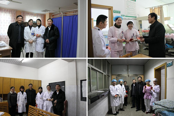 除夕夜,院党委书记、院长韩煌带领有关科室负责人深入临床一线慰问当班的全体医护人员。