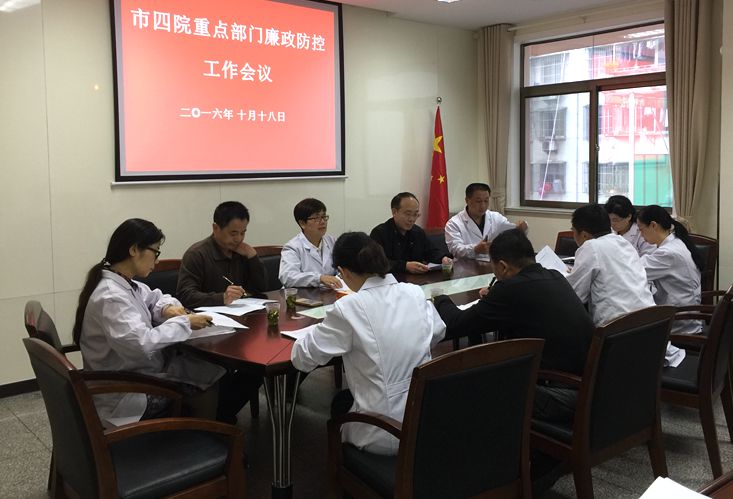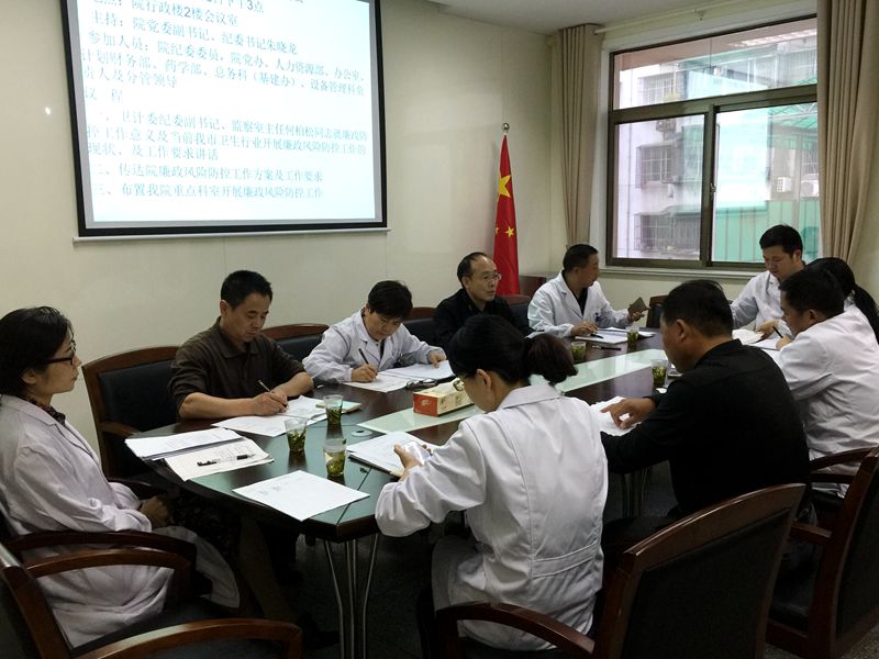 2016年10月18日下午,我院召开了重点部门廉政防控及“以案查险”工作会议。会议由院党委副书记、纪委书记朱晓龙主持。院纪委委员、院党办、人力资源部、办公室、计划财务部、药学部、总务科(基建办)、设备管理科负责人及分管领导参加了会议。市卫计委纪委副书记,监察室主任何柏松到会并就廉政风险防控工作意义及当前我市卫生行业开展廉政风险防控工作的现状作了通报和讲话。